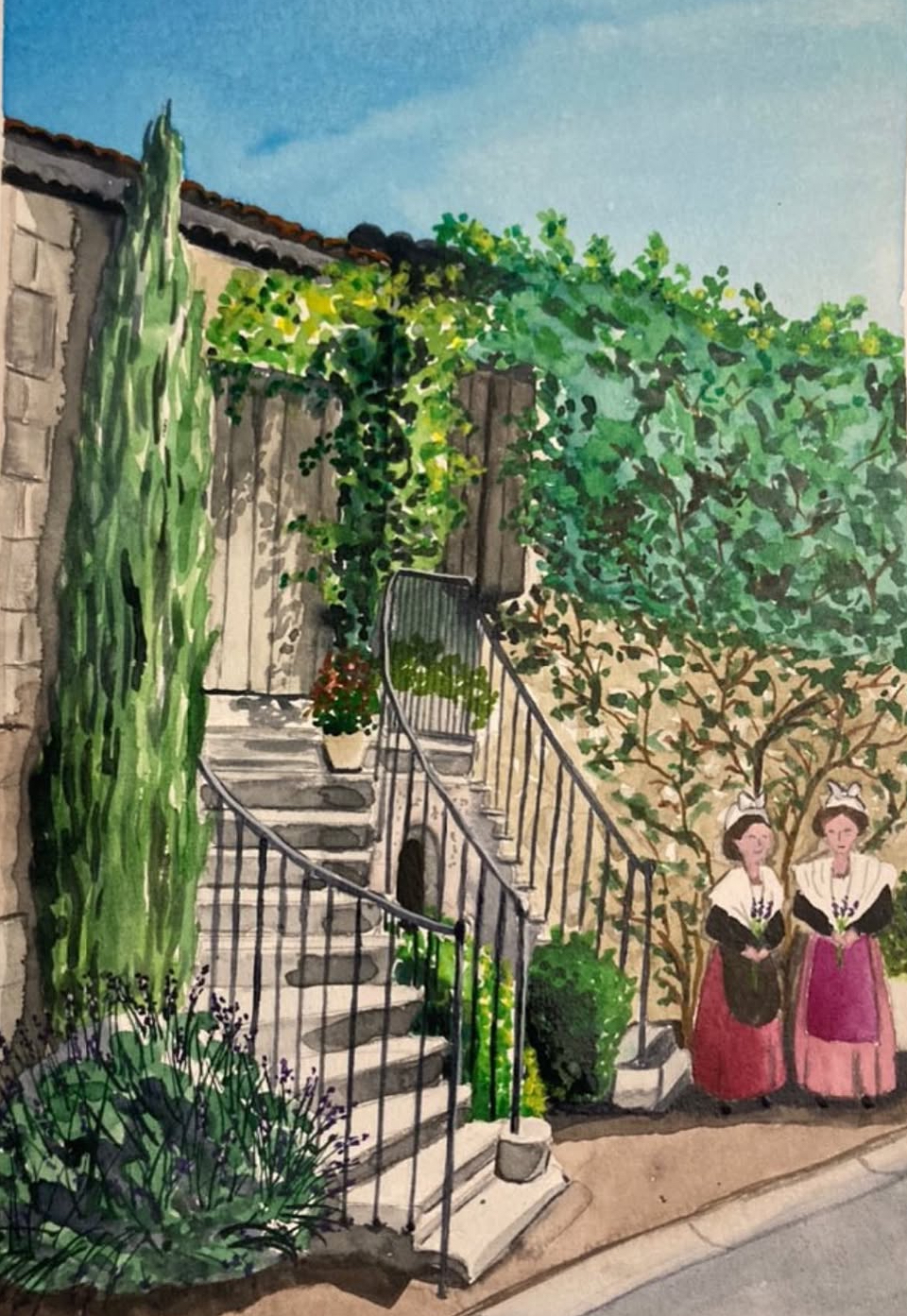 Peinture d'une maison de village située à Mollégès, format 21/29 cm